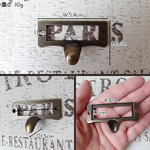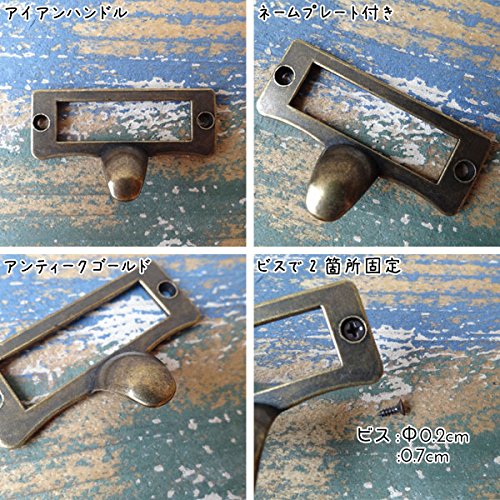 アンティーク調の雰囲気の空間にピッタリの鉄製のネームプレート型のハンドルです。 ネームプレートになっているので、名前を書いたカードを挟めば、何が収納されているかわかりやすいですね。 フレンチカントリー好きな方にオススメです。 小さめの引き出しや、収納ボックスの取っ手として、お好きな所に付けてアレンジして下さい。 取り付けはビスで2箇所固定するだけです。 ヨーロッパ調の大人モダンなインテリアに早変わりします。