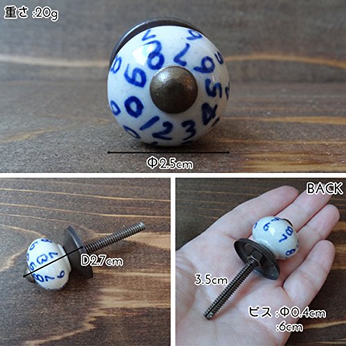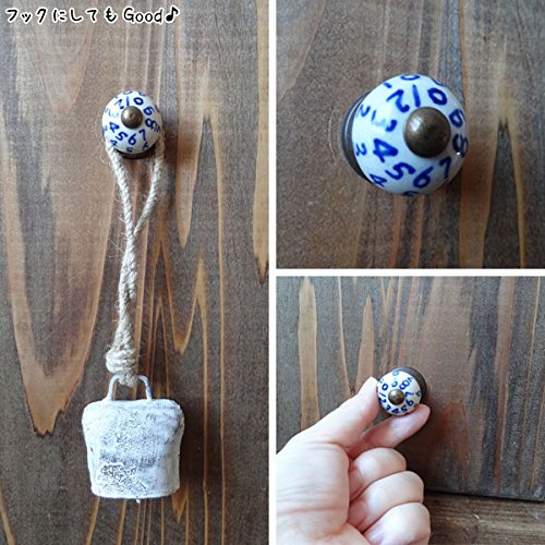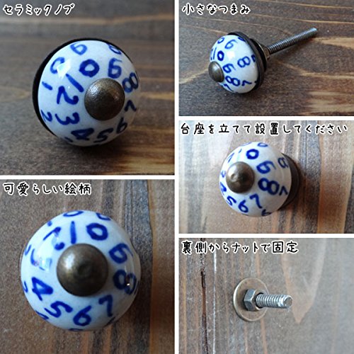 ひとつひとつ丁寧にハンドペイントされた陶器のノブです。 落ち着いた色合いと可愛らしい絵柄が特徴のノブです。 直径2.5cm程の小さなつまみです。 取り付け方によっては、フックとしてもご使用頂ける商品です。 おしゃれなノブを取り入れるだけで お部屋の雰囲気や気分を変えることができます。 好きな所に付けてアレンジして下さい。 商品の台座を立てて設置してください。 裏側からナットで固定するだけなので、取付も簡単です。 ネジが長すぎる場合は、市販のワッシャーをネジの間にかませるか、専門の道具でカットするなど調節してください。 他にもデザインございます。