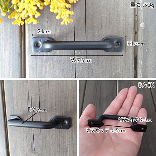 アンティークな雰囲気のアイアンのハンドルです。 深みのあるブラックカラーが印象的です。 シンプルなデザインがスタイリッシュな雰囲気です。 シェルフやキャビネットのハンドルの取り換えだけで簡単にアンティークな雰囲気に。 DIYした家具に取り付けたり、お気に入りの家具のプチリフォームに役立ちます。 取り付けはビスで2箇所固定します。 カラーはブラックとアンティークゴールドの2色ございます。 サイズはSとLの2サイズございます。 ※ビス付き
