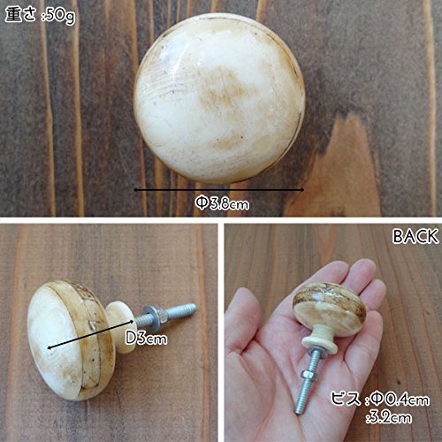 水牛の骨で作られたコロンと丸いフォルムのノブです。 落ち着いた印象のデザインに仕上がっています。 お洒落なノブを取り入れるだけで お部屋の雰囲気や気分を変えることができます。 好きな所に付けてアレンジして下さい。 裏側からナットで固定するだけなので、取付も簡単です。 ネジが長すぎる場合は、市販のワッシャーをネジの間にかませるか、専門の道具でカットするなど調節してください。 他にもデザインございます。