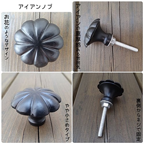 レトロなデザインが可愛いアンティークなアイアンノブです。 シンプルなデザインで、マットな質感のブラックカラーです。 シンプルなデザインなので、どんなインテリアにも合わせやすいです。 キャビネットなどのノブを替えるだけで、雰囲気が変わります。 お気に入りの家具のノブを替えてオリジナルの家具にしてみては。 取り付けは、裏側からナットで固定します。 ネジ部分は板のサイズに合せてワッシャーを挟むかネジを専門の道具でカットするなど調節して下さい。 他にもデザインございます。