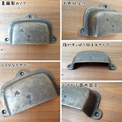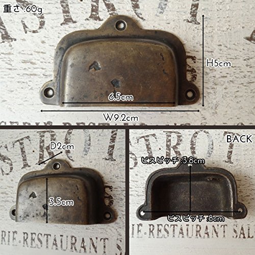 長い年月を経て変色したような味わいのある、まるでのアンティークのような古色仕上げの真鍮製取っ手です。指もすっぽり収まる掴み易い取っ手で、実用的なデザインが特徴的。一点一点手作業で作られているので、それぞれ微妙に形や大きさ、色味が違っていて、その不揃いなバランスがハンドメイドならではの温もりがあります。真鍮ならではくすんだ輝きが魅力的で、屋外での使用でも錆びず、使えば使うほど味が出てくるのも嬉しいですね。わざと施されたアンティーク加工もとっても素敵な風合いで、外国の田舎町やパリのアパルトマンで使われているようなお洒落な家具のような雰囲気に。アンティーク商品に興味はあるけど、高そうで手が出ないそんな方に。取り付けも簡単なので、憧れのアンティーク家具もこんなに手軽に手に入れることができるんです。使い慣れた家具の引出しや扉のつまみを少しだけおめかしして、エレガントで上品なライフスタイルを楽しみましょう※1ヶです。●W9.2cm×H5cm×D2cm重さ:60g