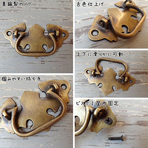 長い年月を経て変色したような味わいのある、まるでのアンティークのような古色仕上げの真鍮製取っ手です。しっかりと安定した上品なデザインの台座と、つかみやすい持ち手が特徴的。一点一点手作業で作られているので、それぞれ微妙に形や大きさ、色味が違っていて、その不揃いなバランスがハンドメイドならではの温もりがあります。真鍮ならではくすんだ輝きが魅力的で、屋外での使用でも錆びず、使えば使うほど味が出てくるのも嬉しいですね。わざと施されたアンティーク加工もとっても素敵な風合いで、外国の田舎町やパリのアパルトマンで使われているようなお洒落な家具のような雰囲気に。アンティーク商品に興味はあるけど、高そうで手が出ないそんな方に。取り付けも簡単なので、憧れのアンティーク家具もこんなに手軽に手に入れることができるんです。使い慣れた家具の引出しや扉のつまみを少しだけおめかしして、エレガントで上品なライフスタイルを楽しみましょう※1ヶです。