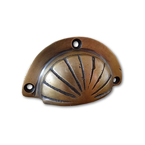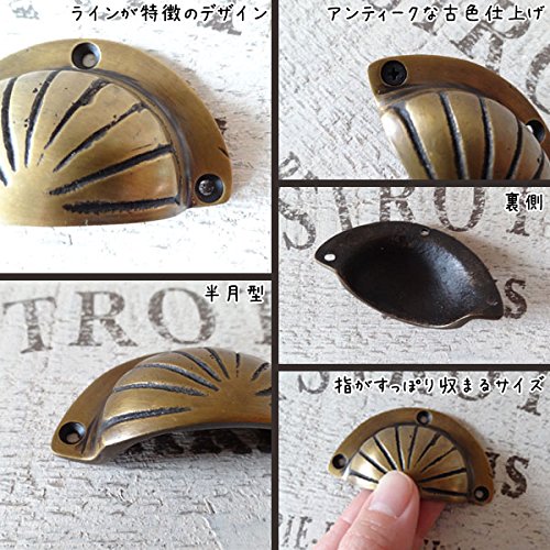 長い年月を経て変色したような味わいのある、まるでのアンティークのような古色仕上げの真鍮製取っ手です。指もすっぽり収まる掴み易い半月型の取っ手で、切り込みの入ったラインデザインとぷっくり可愛いフォルムが特徴的。一点一点手作業で作られているので、それぞれ微妙に形や大きさ、色味が違っていて、その不揃いなバランスがハンドメイドならではの温もりがあります。真鍮ならではくすんだ輝きが魅力的で、屋外での使用でも錆びず、使えば使うほど味が出てくるのも嬉しいですね。わざと施されたアンティーク加工もとっても素敵な風合いで、外国の田舎町やパリのアパルトマンで使われているようなお洒落な家具のような雰囲気に。アンティーク商品に興味はあるけど、高そうで手が出ないそんな方に。取り付けも簡単なので、憧れのアンティーク家具もこんなに手軽に手に入れることができるんです。使い慣れた家具の引出しや扉のつまみを少しだけおめかしして、エレガントで上品なライフスタイルを楽しみましょう※1ヶです。