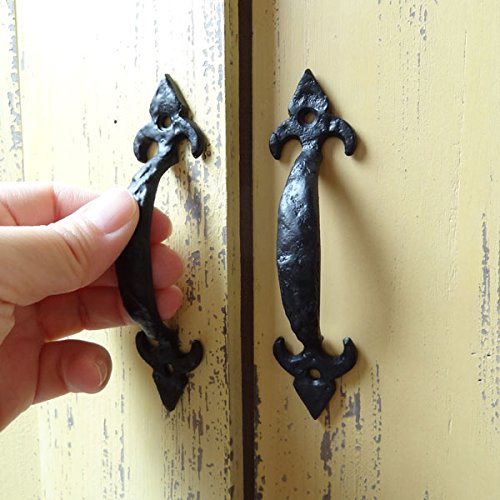 槌目のような凝ったデザインのドアハンドルです。 家具や小ぶりの扉などに取り付けてみませんか? アンティークなデザインで雰囲気があります。 持ち易いデザインです。