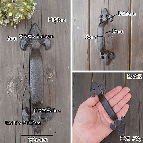 - ※1ヶの価格です。 ※アンティークな風合です。 ※モニターによって、画像商品と実物商品との色目が違うことがあります。 ※ハンドメイドに付き個体差があり記載サイズと多少誤差がございます。 ※アイアン素材ですので屋外で使用しますとサビが生じることがございます。サビ止め塗装などの加工が必要です。 ※ビス付 ※写真はサンプルのもので、お届けする商品とは形や色のつき方が異なる場合が御座いますので予めご了承下さい。