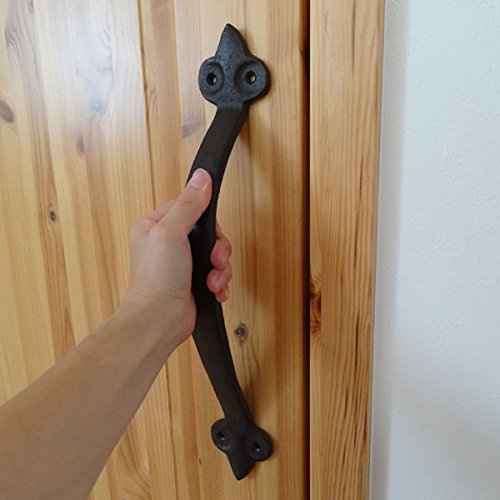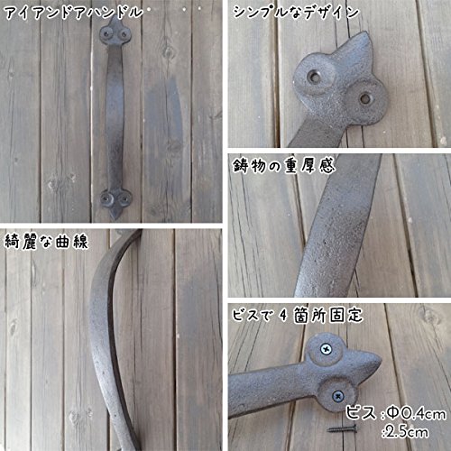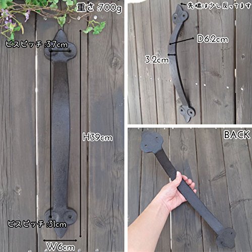 重厚な雰囲気で曲線が美しいデザインのアイアンドアハンドルです。 曲線デザインが手にフィットし易い形です。 しっかりとした作りで扉の取っ手に使えるDIYアイテムです。 サイズ違いもございます。 ビス穴は4箇所です。