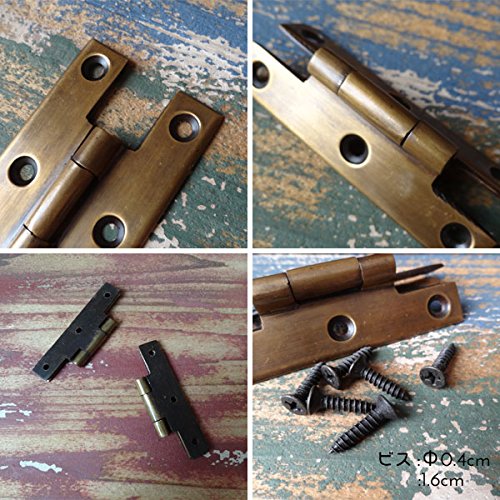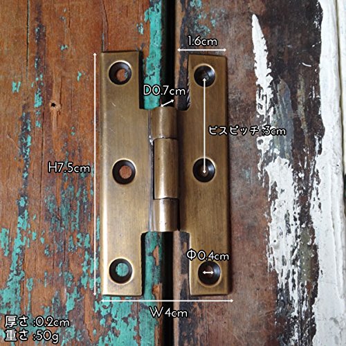 長い年月を経て変色したような味わいのある、古色仕上げの真鍮製蝶番です。 本物のアンティークにも負けない風合いで、アンティークにこだわりを持っておられる方も文句なしの完成度です。一点一点手作業で作られており、ハンドメイドならではの味わいと温もりがあります。真鍮ならではのくすんだ輝きが魅力的で、使えば使うほど味が出てくるのも嬉しいですね。 装飾性と実用性を兼ね備えたオススメ商品です。ドアの吊込みや建付の調整が簡単で、取り付けも簡単なので、憧れのアンティーク家具もこんなに手軽に手に入れることができるんです。 いつもの家具にもちょっとおめかしさせてあげませんか?
