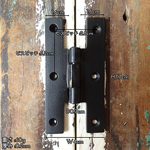 アンティークな雰囲気のアイアンヒンジ(蝶番)です。 繊細な細工が施され、アイアンの重厚な色合いが素敵なヒンジです。 扉の蝶番を変えるだけで、いつもの扉がアンティーク調のインテリアに早変わりします。 重量感のあるアイアンパーツが扉に深みと表情を作り出します。 しっかりした作りでカントリーテイストのお部屋にピッタリです。 大人のお部屋にピッタリなアンティークテイストの雑貨です。 お手頃な価格なのも嬉しいですね。 他にもデザインございます。