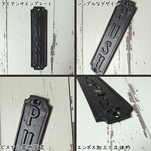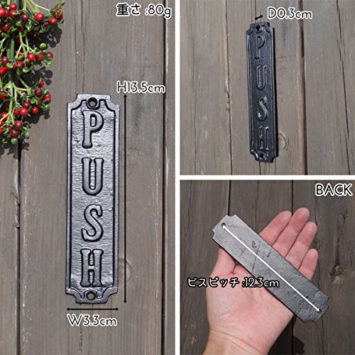 アンティークな雰囲気のアイアンサインプレートです。 PUSHの文字がエンボス加工されたシンプルなデザインで見やすいです。 繊細な細工が施され、アイアンの重厚な色合いが素敵なプレートです。 重量感のあるアイアンパーツが扉に深みと表情を作り出します。 しっかりした作りでカントリーテイストのお部屋にピッタリです。 大人のお部屋にピッタリなアンティークテイストの雑貨です。 PULLもございます。