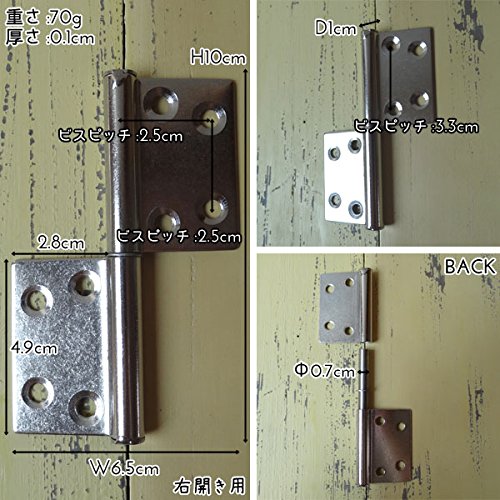 - サイズ:W6.5cm×H10cm×D1cm 厚み:0.1cm ビスピッチ:2.5cm 3.3cm 重さ:1個70g