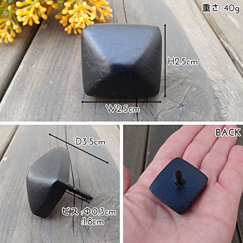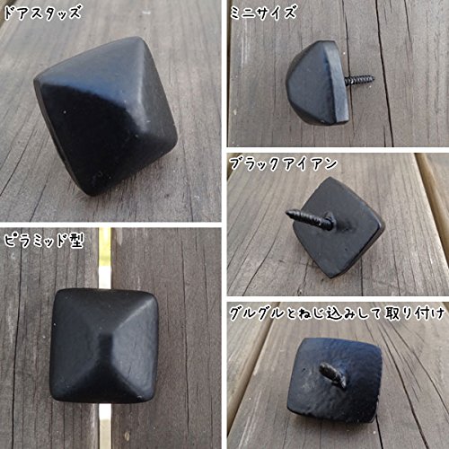 アイアンのドアスタッズです。 ピラミッド型のスタッズです。 重厚感あるアイアンのドアパーツです。 シンプルなデザインで、ミニサイズですが、存在感を発揮します。 ドアにこのようなアクセントを付けるだけで、随分イメージも変わります。 ドアだけでなく、小物や飾り棚、壁面などに付けても♪ 取り付けは、ネジになっておりますので、そのまま手でグルグルとねじ込みして取り付けしてください。 大人のお部屋にぴったりなアンティークテイストな雑貨です。 あなただけのオリジナルのドアを作ってみては。 他にもデザインございます。