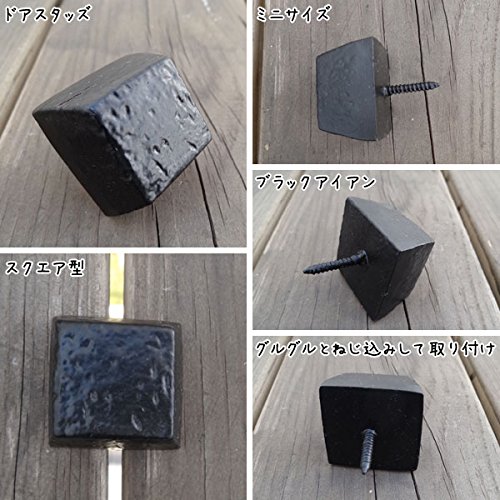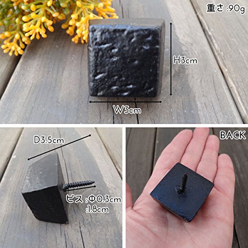 アイアンのドアスタッズです。 シンプルなスクエア型のスタッズです。 重厚感あるアイアンのドアパーツです。 シンプルなデザインで、ミニサイズですが、存在感を発揮します。 ドアにこのようなアクセントを付けるだけで、随分イメージも変わります。 ドアだけでなく、小物や飾り棚、壁面などに付けても♪ 取り付けは、ネジになっておりますので、そのまま手でグルグルとねじ込みして取り付けしてください。 大人のお部屋にぴったりなアンティークテイストな雑貨です。 あなただけのオリジナルのドアを作ってみては。 他にもデザインございます。