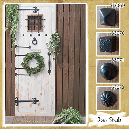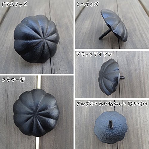 アイアンのドアスタッズです。 可愛いお花のようなモチーフのスタッズです。 重厚感あるアイアンのドアパーツです。 シンプルなデザインで、ミニサイズですが、存在感を発揮します。 ドアにこのようなアクセントを付けるだけで、随分イメージも変わります。 ドアだけでなく、小物や飾り棚、壁面などに付けても♪ 取り付けは、ネジになっておりますので、そのまま手でグルグルとねじ込みして取り付けしてください。 大人のお部屋にぴったりなアンティークテイストな雑貨です。 あなただけのオリジナルのドアを作ってみては。 他にもデザインございます。