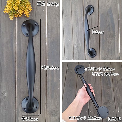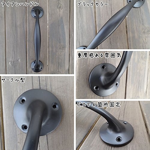 アンティークな雰囲気のアイアンのハンドルです。 深みのあるブラックカラーが印象的です。 シンプルなデザインがスタイリッシュな雰囲気です。 家具のハンドルの取り換えだけで簡単にアンティークな雰囲気に。 DIYした家具に取り付けたり、お気に入りの家具のプチリフォームに役立ちます。 取り付けはビスで6箇所固定します。 カラーはブラックとアンティークゴールドの2色ございます。 ※ビス付き