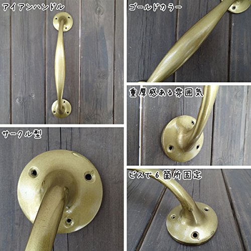 アンティークな雰囲気のアイアンのハンドルです。 アンティークなゴールドカラーが印象的です。 シンプルなデザインがスタイリッシュな雰囲気です。 家具のハンドルの取り換えだけで簡単にアンティークな雰囲気に。 DIYした家具に取り付けたり、お気に入りの家具のプチリフォームに役立ちます。 取り付けはビスで6箇所固定します。 カラーはブラックとアンティークゴールドの2色ございます。 ※ビス付き