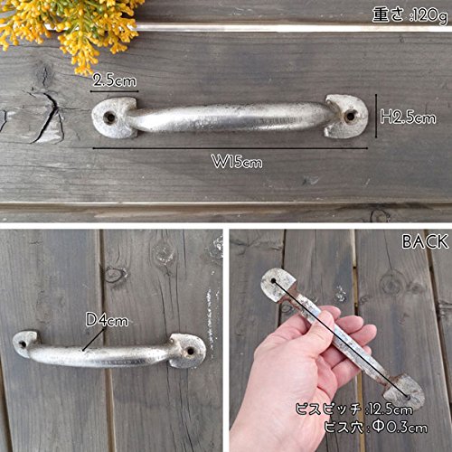 アンティークな風合いの塗装なしのニッケルカラーのアイアンハンドルです。 アンティーク感たっぷりですが、甘すぎず渋すぎず、大人可愛い雰囲気を持っていて、シンプルなのでどんなお部屋のテイストにもマッチします。 わざと施されたアンティーク加工もとっても素敵な風合いで、外国の田舎町やパリのアパルトマンで使われているようなお洒落な家具のような雰囲気に。 台座をおもてからビスで二箇所留めるだけで簡単に取り付ける事ができ、お気に入りの家具やキッチンキャビネット、小物入れ、チェストなどをあっと言う間に素敵に変身させてくれますよ! アンティーク商品に興味はあるけど、高そうで手が出ない…そんな方にこそオススメ。 あなただけの素敵なイメージを膨らませて、素敵なプチリフォームにチャンレジしてみて下さいね! カラーはブラックとニッケルの2色ございます。 ※ビス付き
