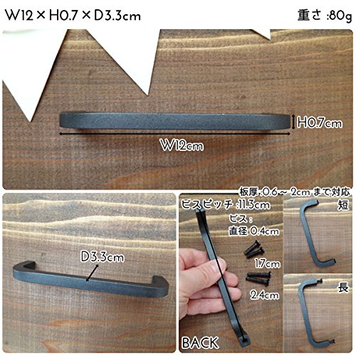 DIYで大活躍するアイアンのハンドルです。 シンプルなデザインで使いやすい内側からのネジ止めタイプです。 鉄の風合いをそのまま活かした無骨なDIYパーツです。 シンプルなので、どんなインテリアにも馴染みやすく、存在感があります。 S/M/Lの3サイズ、丸タイプと角タイプの2タイプございます。 DIYで作ったコンテナボックスの取っ手などにいかがでしょうか? 板厚6mm~20mmまで対応です。 ※取り付けビス4本付。 ※長さ違いで各2本ずつになります。 ※合わない場合は使用しないで下さい。