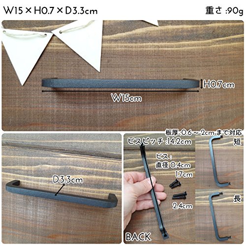 DIYで大活躍するアイアンのハンドルです。 シンプルなデザインで使いやすい内側からのネジ止めタイプです。 鉄の風合いをそのまま活かした無骨なDIYパーツです。 シンプルなので、どんなインテリアにも馴染みやすく、存在感があります。 S/M/Lの3サイズ、丸タイプと角タイプの2タイプございます。 DIYで作ったコンテナボックスの取っ手などにいかがでしょうか? 板厚6mm~20mmまで対応です。 ※取り付けビス4本付。 ※長さ違いで各2本ずつになります。 ※合わない場合は使用しないで下さい。