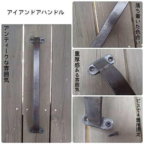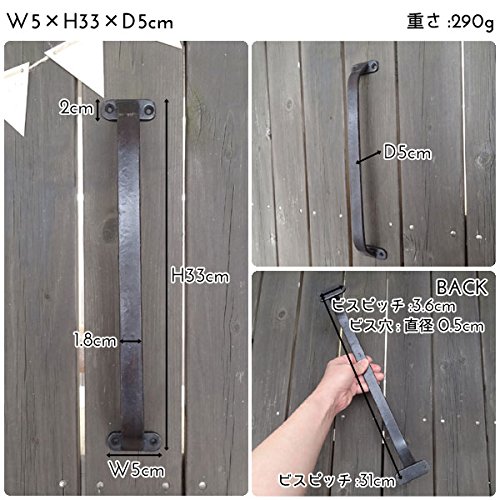 アンティークな雰囲気のアイアンのドアハンドルです。 アイアンの重厚感のある雰囲気と落ち着いたカラーが大人な雰囲気です。 茶色がかったブラックカラーです。 大きめサイズです。 シンプルなデザインがスタイリッシュなインテリアにピッタリ。男前インテリアにもオススメです。 取り付けはビスで4箇所固定します。 扉のハンドルを替えるだけで、一気にアンティークな雰囲気にしてくれます。 扉に表情をつけてくれるお洒落アイテムです。 他にもデザインございます。