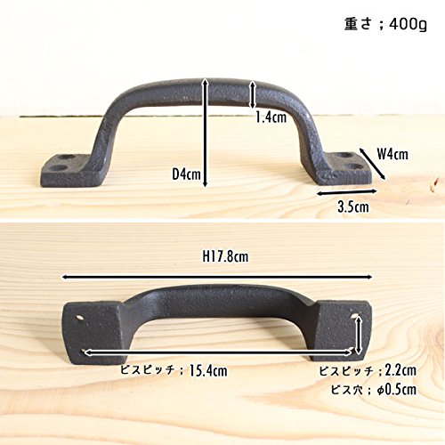 アンティークな雰囲気のアイアンのハンドルです。 深みのあるブラックカラーが印象的です。 シンプルなデザインがスタイリッシュに家具を引き締めてくれます。 DIYした家具に取り付けたり、お気に入りの家具のプチリフォームに役立ちます。 重量感とマットなブラックカラーが素敵な一点です。 ※ビス付き