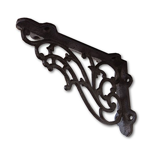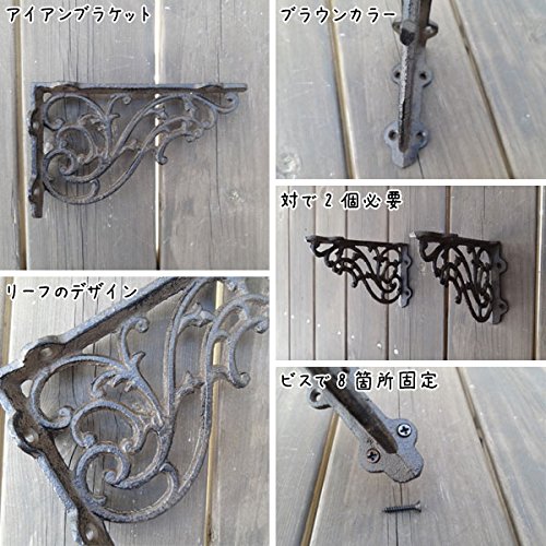 落ち着いたブラウンカラーと小振りなサイズが特徴的な、リーフデザインがとっても可愛いアンティーク調アイアンブラケットです。棚板を用意し、ビスで留めるだけで簡単に取り付ける事ができ、場所を取らない素敵なディスプレイゾーンや収納スペースを簡単に作れる便利アイテム。細部までこだわって作られたデザインは、日に当たるとその影が壁や床に映し出され、それまでもがインテリアのような計算された美しさです。クラシカルなデザインと、アンティーク感を出すためにわざと古びたように加工された素材感は、憧れのアンティークの似合うお部屋を演出してくれます。簡単な収納や、本棚、ガーデンディスプレイ、お気に入りの小物のディスプレイゾーンなど、場所も用途も選びません。雑貨屋さんやカフェなどのお洒落なインテリアをイメージして、自分好みの素敵なお部屋作りを楽しんでくださいね※1個です。