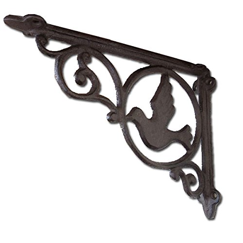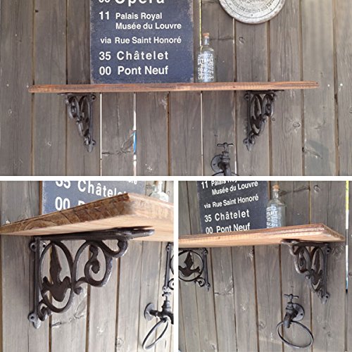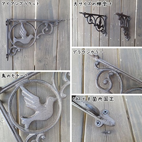 鳥のモチーフがとってもかわいいブラケットです。 繊細なデザインと丈夫さが魅力のアンティーク調アイアンブラケットです。 棚板を用意し、ビスで留めるだけで簡単に取り付ける事ができ、素敵なディスプレイゾーンや収納スペースを簡単に作れる便利アイテム。 アンティーク感を出すためにわざと古びたように加工された素材感は、憧れのアンティークの似合うお部屋を演出してくれます。