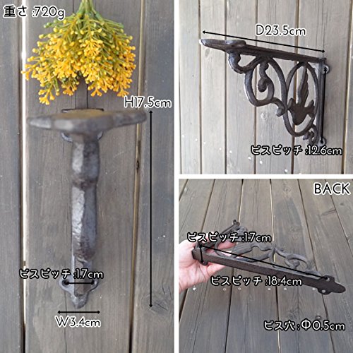 - ※1ヶの価格です。 ※こちらの商品はアンティークの風合いを出すために特殊なサビ加工や汚し、研磨等を施しています。商品によって加工の程度は異なりますが、商品の特徴としてご理解頂きその風合いをお楽しみ下さい。 ※モニターによって、画像商品と実物商品との色目が違うことがあります。 ※写真はサンプルのもので、お届けする商品とは形や色のつき方が異なる場合が御座いますので予めご了承下さい。 ※ハンドメイドですので個々のサイズに多少ばらつきがございます。 ※この商品は壁の強度によって耐荷量が変わってしまいますので、明確に耐荷量をお答えする事ができません。 ※あまり重い物を置いてしまうと耐えられない恐れが御座いますので、あくまでも飾り棚としてお考え頂ければと思います。 ※写真はサンプルのもので、お届けする商品とは形や色のつき方が異なる場合が御座いますので予めご了承下さい。