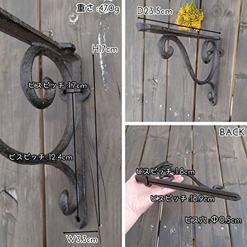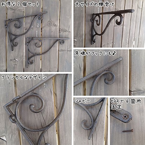 - ※2ヶセットの価格です。 ※この商品は壁の強度によって耐荷量が変わってしまいますので、明確に耐荷量●●kgとお答えする事ができません。 あまり重い物を置いてしまうと耐えられない恐れがございます。 ※こちらの商品はアンティークの風合いを出すための加工を施しています。 商品によって加工の程度は異なりますが、商品の特徴としてご理解くださいませ。 ※モニターによって、画像商品と実物商品との色目が違うことがあります。 ※この商品はスチール(鉄鋼)製ですので、安全面をお考えの上取り付け位置等、ご注意お願い致します。 ※写真はサンプルのもので、お届けする商品とは形や色のつき方が異なる場合が御座いますので予めご了承下さい。