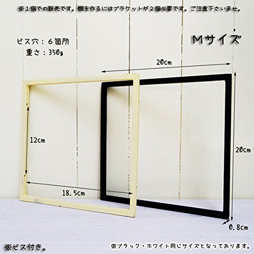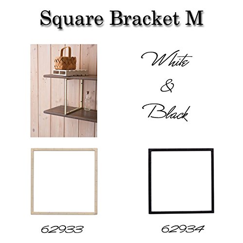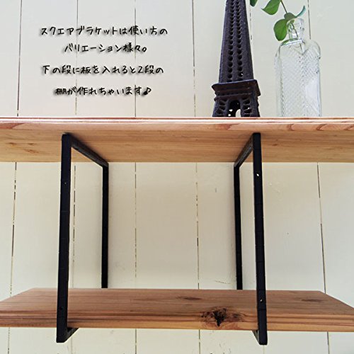 ブラックカラーとシンプルなフォルムがすっきりとした印象を演出してくれるスクエアブラケットです。 棚板を用意し、ビスで留めるだけで簡単に取り付ける事ができ、場所を取らない素敵なディスプレイゾーンや収納スペースを簡単に作れる便利アイテム。 四角形のブラケットにはビス穴が3面にあり、面の下側にビスを打ちつけると下側にも棚が出来るので、安定感のある2段で収納できる棚に大変身! 下側にビスを打ち付けなくても四角形の内側に板を入れると簡単に2段の棚を作れますよ。(この場合は棚が少し不安定になります。)