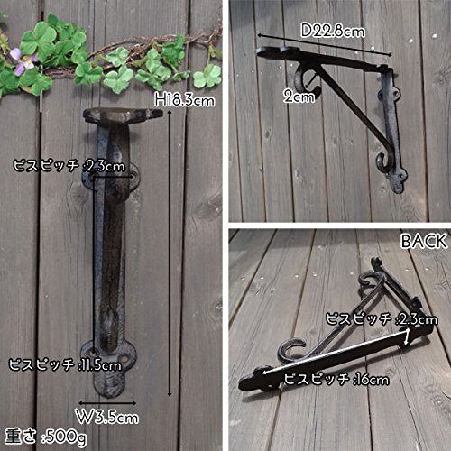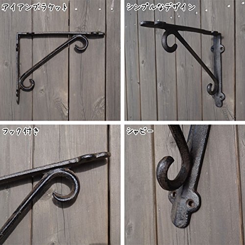 - 【ご注意】※ブラケットはハンドメイドの為、正確な90度ではありませんが、取り付け使用上、問題ございません。 ※こちらは商品1個の価格となっています。2個セットの価格ではないので購入時はご注意くださいませ。 ※アンティーク風に仕上げております。形や色合いなど多少異なる場合があります。 ※小傷・色ムラ・サイズが若干記載と異なる場合があります。 ※高温多湿の場所でのご使用はサビが発生する恐れがあります。 ※モニターによって、画像商品と実物商品との色目が違うことがあります。 ※写真はサンプルのもので、お届けする商品とは形や色のつき方が異なる場合が御座いますので予めご了承下さい。
