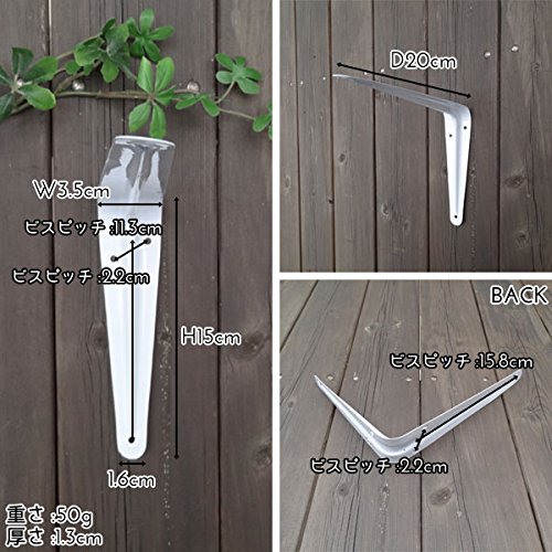- サイズ:W3.5cm×H15cm×D20cm 厚み:1.3cm ビスピッチ:壁側2.2cm 11.3cm/棚側2.2cm 15.8cm 重さ:50g