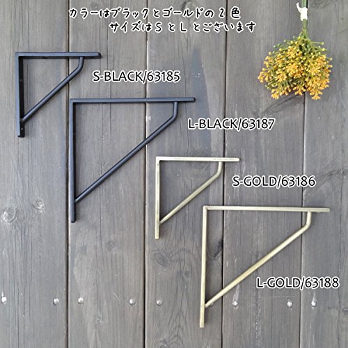 シンプルなアイアンのブラケットです。 シンプルを追求し、すっきりとしたラインが魅力。 華奢なラインがお洒落な雰囲気です。 シンプルなデザインなので、どんな棚板にも合わせやすいです。 すっきりしたスタイリッシュな雰囲気のインテリアにピッタリ。 店舗や住居で使用できる主張しすぎず、実用性もかねたアイテムです。 シンプルにこだわりある空間づくりに。 1つの価格ですので、対で使用する場合には、2個必要です。 取り付けは4箇所、ビスで固定します。 商品重量と棚板及び置く物の合計重量をご考慮の上、壁にあった適切なビスをご使用下さい。 棚板は付いておりません。 ネジ付き。 カラーはブラックとゴールドの2色ございます。 サイズはSとLの2サイズございます。