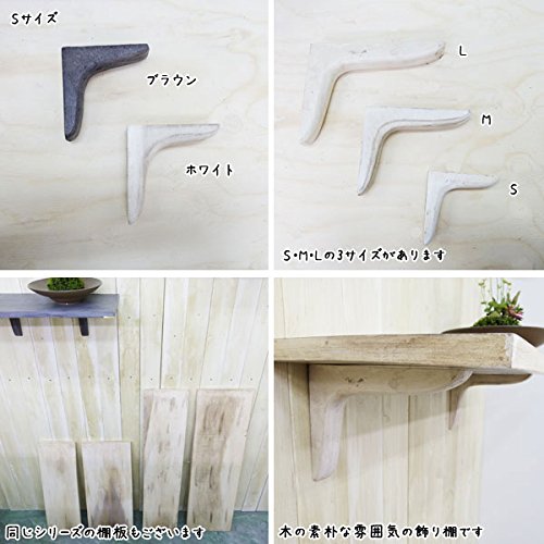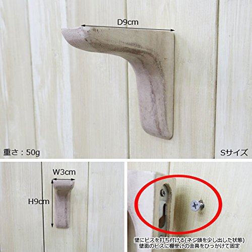 - 【ご注意】※ブラケットはハンドメイドの為、正確な90度ではありませんが、取り付け使用上、問題ございません。 ※2個で1セット販売の商品です。 ※この商品は壁の強度によって耐荷量が変わってしまいますので明確に耐荷量●●kgとお答えする事ができません。あまり重い物を置いてしまうと耐えられない恐れがございます。 ※一つ一つ手彫りの為、大きさに多少の誤差があります。 ※小傷・色ムラ・サイズが若干記載と異なる場合がありますが、ハンドメイドの温かみある商品の良さとご理解いただき、予めご了承ください。 ※こちらの商品はアンティーク風の仕上げを施しています。木製部分のキズ、塗料の色むら・多少のゆがみなどは商品の持ち味としてご理解ください。 ※木製品のため、乾燥するとヒビ割れが起こる恐れがあります。 ※モニターによって、画像商品と実物商品との色目が違うことがあります。 ※写真はサンプルのもので、お届けする商品とは形や色のつき方が異なる場合が御座いますので予めご了承下さい。
