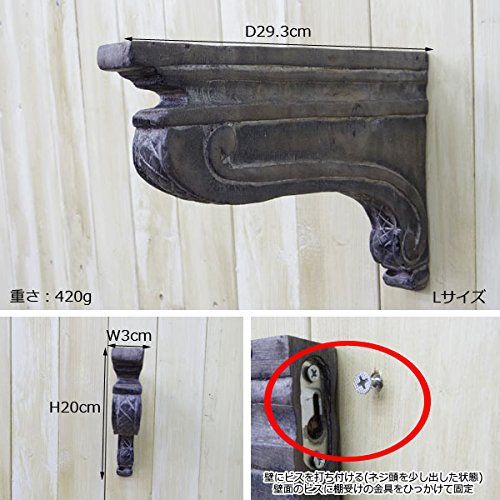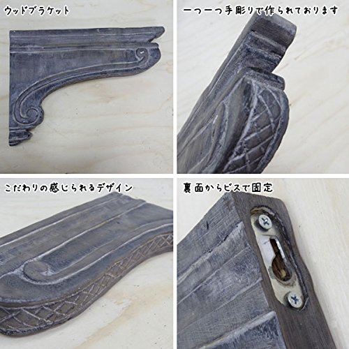 - 【ご注意】※ブラケットはハンドメイドの為、正確な90度ではありませんが、取り付け使用上、問題ございません。 ※2個で1セット販売の商品です。 ※この商品は壁の強度によって耐荷量が変わってしまいますので明確に耐荷量●●kgとお答えする事ができません。あまり重い物を置いてしまうと耐えられない恐れがございます。 ※一つ一つ手彫りの為、大きさに多少の誤差があります。 ※小傷・色ムラ・サイズが若干記載と異なる場合がありますが、ハンドメイドの温かみある商品の良さとご理解いただき、予めご了承ください。 ※こちらの商品はアンティーク風の仕上げを施しています。木製部分のキズ、塗料の色むら・多少のゆがみなどは商品の持ち味としてご理解ください。 ※木製品のため、乾燥するとヒビ割れが起こる恐れがあります。 ※モニターによって、画像商品と実物商品との色目が違うことがあります。 ※写真はサンプルのもので、お届けする商品とは形や色のつき方が異なる場合が御座いますので予めご了承下さい。