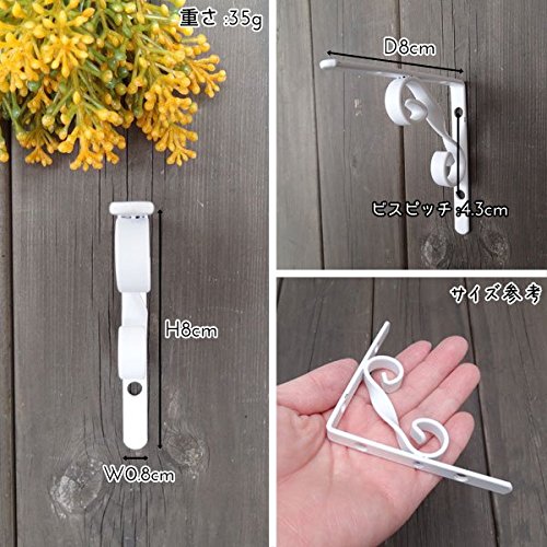 シンプルなアイアンのブラケットです。 アイアンの綺麗な曲線のデザインです。 シンプルながらも、デザイン性があって存在感があります。 シンプルなデザインなので、どんな棚板にも合わせやすいです。 カントリーテイストな雰囲気のインテリアにピッタリ。 店舗や住居で使用できる主張しすぎず、実用性もかねたアイテムです。 シンプルにこだわりある空間づくりに。 1つの価格ですので、対で使用する場合には、2個必要です。 取り付けは4箇所、ビスで固定します。 商品重量と棚板及び置く物の合計重量をご考慮の上、壁にあった適切なビスをご使用下さい。 棚板は付いておりません。 カラーはブラックとホワイトの2色ございます。 他にもサイズございます。