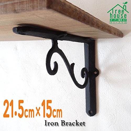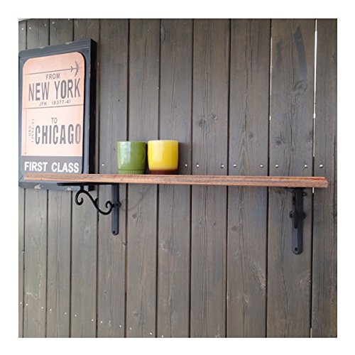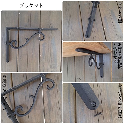 アンティークな雰囲気とおしゃれなデザインのブラケットです。 マットな黒がカッコイイです。 アイアンなのでしっかりした重厚感もあります。 お好みの棚板と合わせて、簡単にオリジナルの飾り棚を作ることができます。 シンプルな壁面に取り付けて、インテリアのアクセントに。 ビスで8箇所固定します。