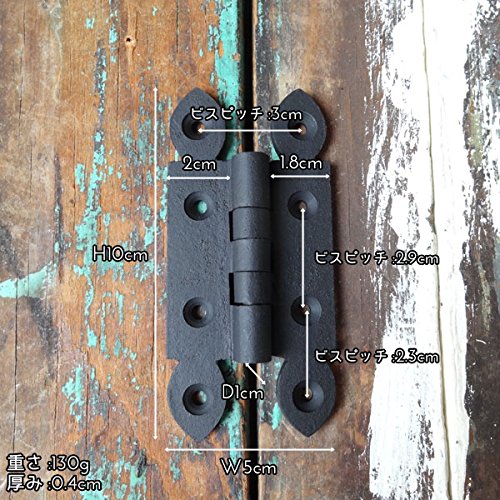 デザインが素敵なクールな印象のブラックブラスの蝶番です。 真鍮製なので錆びにくく長く使用することができます。 ネジ穴は全部で8つあり、しっかりと固定することができます。 凝ったデザインの蝶番はなかなか見つけにくいですよね。 素敵な家具やドアなどをもっとお洒落にDIYしたい方におすすめの商品です。