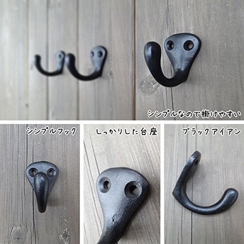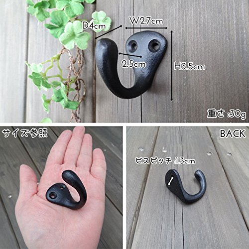 アイアンの曲線とスリムなデザインのシングルフックです。 どんな場所にも馴染むシンプルなデザインです。 狭い場所にも取り付けできます。 並べて取り付けてもお洒落です。 自分の好きな板にDIYで多連フックを作るのも良いですね! アンティークな風合加工です。黒の塗装が欠けた部分があり下地のゴールド塗装が見えますがアンティークな風合としてお楽しみ下さい。 他にも同じシリーズでの種類がございます。 ビス付