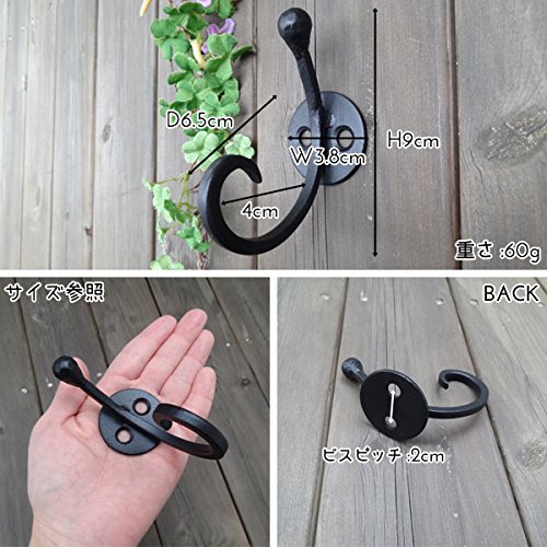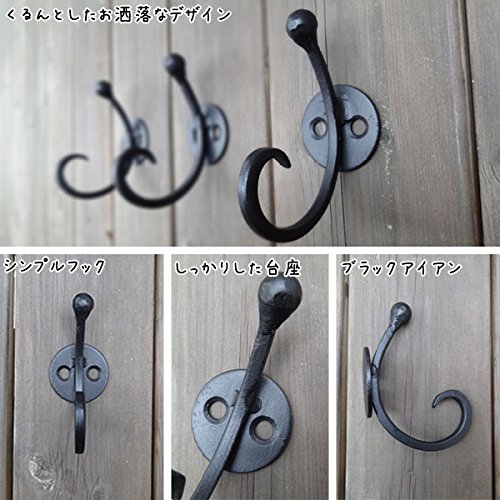 アイアンの曲線とスリムなデザインのシングルフックです。 どんな場所にも馴染むシンプルなデザインです。 狭い場所にも取り付けできます。 並べて取り付けてもお洒落です。 自分の好きな板にDIYで多連フックを作るのも良いですね! アンティークな風合加工です。黒の塗装が欠けた部分があり下地のゴールド塗装が見えますがアンティークな風合としてお楽しみ下さい。 他にも同じシリーズでの種類がございます。 ビス付