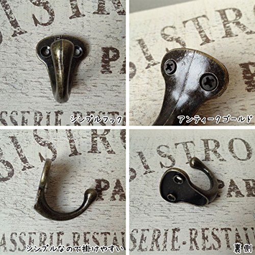 アンティークな風合のゴールド色が印象的なシンプルなフックです。 どんな場所にも馴染むシンプルなデザインです。 狭い場所にも取り付けできます。 並べて取り付けてもお洒落です。 自分の好きな板にDIYで多連フックを作るのも良いですね! アンティークな風合加工です色ムラなどがありますがアンティークな風合としてお楽しみ下さい。 他にも同じシリーズでの種類がございます。 ビス付