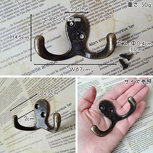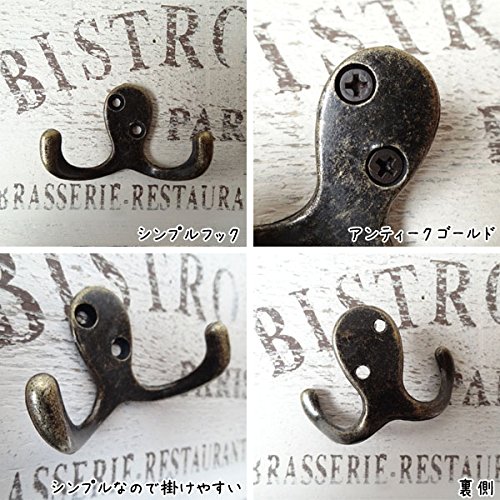 アンティークな風合のゴールド色が印象的なシンプルなダブルフックです。 どんな場所にも馴染むシンプルなデザインです。 狭い場所にも取り付けできます。 並べて取り付けてもお洒落です。 自分の好きな板にDIYで多連フックを作るのも良いですね! アンティークな風合加工です色ムラなどがありますがアンティークな風合としてお楽しみ下さい。 他にも同じシリーズでの種類がございます。 ビス付