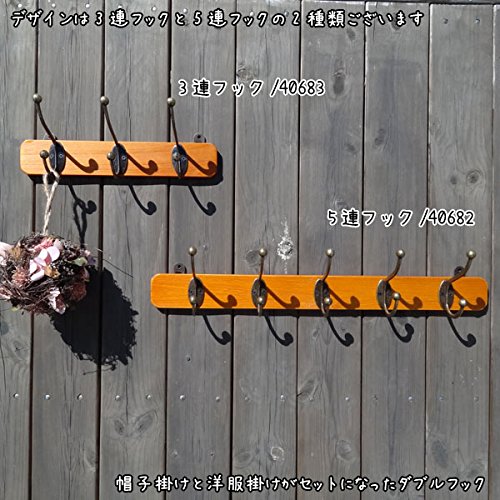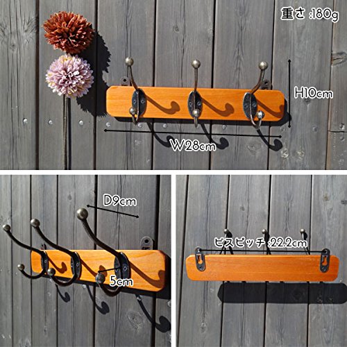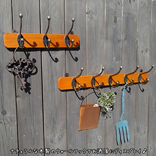 帽子掛けと洋服掛けがセットになったダブルフックです。 素材感のあるナチュラルな木製のウォールフック。 ライトブラウンの明るめの木とアンティークゴールドのフックがいい雰囲気。 玄関につけてインテリアのアクセントに。 コートや帽子、バッグをかけるのはもちろん、 お気に入りの小物などをかけるとお洒落なディスプレイにもなりそう。 デザインは3連フックと5連フックの2種類ございます。 一緒に並べてつけると素敵です。