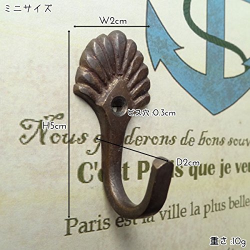 シンプルで使いやすい形のシングルフックです。 貝殻の様なデザインが小さいながらも豪華な雰囲気です。 アンティークゴールドの質感が高級感のある雰囲気を出しています。 コートや帽子をかけるスペースを簡単に作ることができるフックでお部屋を整理整頓しちゃいましょう。 お洒落に便利に使えるアイテムです。