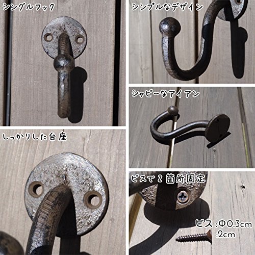 アンティークな雰囲気の落ち着いたブラウンカラーのアイアンシングルフックです。 シンプルでインテリアスタイルを選ばず、どんな雰囲気のお部屋にも合うスマートなデザインが魅力的。 主張しすぎず控えめなデザインなので、周りのインテリアともすんなり調和する、甘すぎず・渋すぎない絶妙なバランスが素敵です。 ちょっとしたお洋服や、鍵など細かいもの、キッチン用品やガーデニング用品をかけたり、お気に入りのアクセサリーをディスプレイしたり…空間の整理に一役買ってくれますよ。 いくつか並べて取り付けると統一感があって素敵です。
