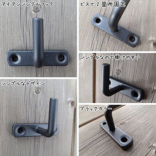 アンティークな雰囲気のアイアンのシングルフックです。 深みのあるブラックカラーが印象的です。 シンプルなデザインがスタイリッシュな雰囲気です。 シンプルなので掛けやすいです。 アンティークな雰囲気がお洒落で壁面のアクセントにもなります。 インテリアスタイルを選ばす、どんな場所にも馴染みやすいです。 取り付けはビスで2箇所固定します。 カラーはブラックとアンティークゴールドの2色ございます。 フックはシングル・3連・5連・8連とございます。 いくつか並べて付けると素敵です。