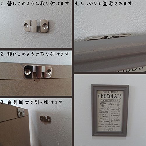 2枚1セットで組み合わせて使う、落とし込み金具です。 額などを吊るす場合に使います。 外から金具が見えません。 一方を壁に、もう一方を取り付ける物の裏に取り付け、引っ掛けて吊ります。 金具の取り付けはビスで二箇所固定します。 しっかりと固定したい時にオススメです。 取り外しが簡単なので、額など飾る物をいろいろ替える時に便利ですね。