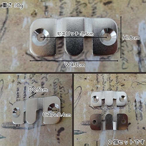 - サイズ:W4.3cm×H1.8cm×D0.5cm ビスピッチ:3.3cm ビス穴:0.4cm 重さ:1個10g