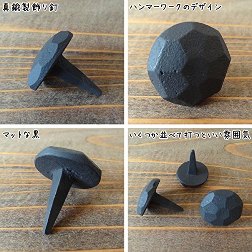アイアンのマット系の落ち着いたお洒落な飾り釘です。 手作り作品に加えたり、既製の木製家具や小物にアレンジして、あなただけのオリジナル作品にしてみませんか? DIYで楽しくアイデア次第でアレンジできるアイテムです。 いくつか並べて打ったり、ワンポイントで打ったりと色々楽しむ事が出来ます。