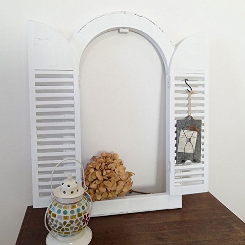 使い込まれたようなアンティーク調の加工が施されたウィンドーフレーム。 白の色合いが優しい、かわいい表情のウィンドーフレームです。 お部屋のコーナー部分に立てて小物を置いて、あなただけのオリジナルの空間を作ってみては。 裏面に壁掛け用フックが付いているので、出窓や窓に取り付けたりもできます。 ちょっと壁面を隠したいところにつけてみたり、壁面ディスプレイしておしゃれに飾るのも素敵ですね。 アイデア次第で使い方はいろいろです。 窓を開ければ素敵なあなただけの世界が広がりそう